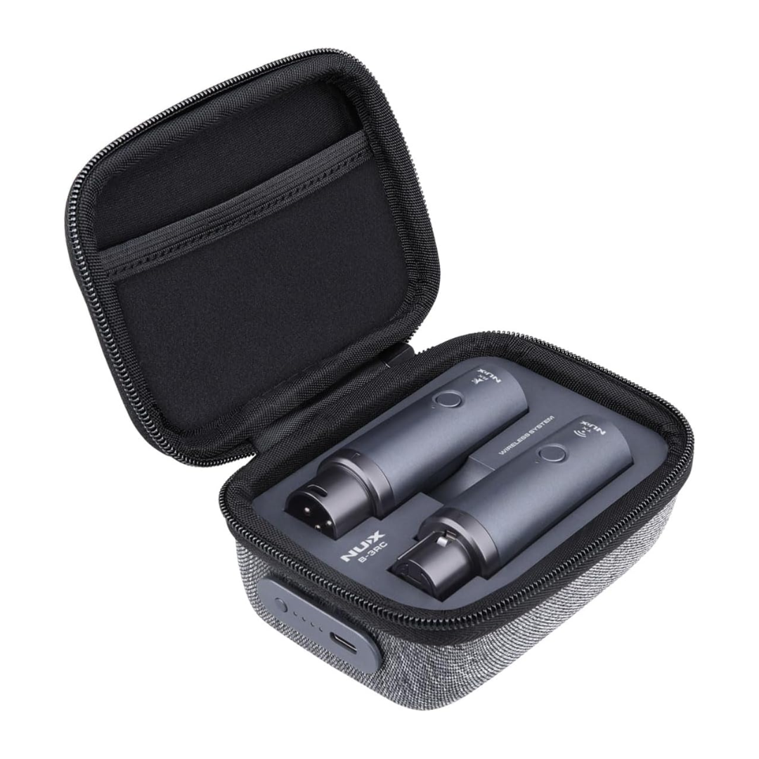 The NUX B-3RC frees vocalists and musicians from cables with an easy-to-use wireless microphone system. The compact B-3RC delivers high-resolution 24-bit/44.1kHz audio with ultralow 4.8ms latency. It automatically pairs the transmitter and receiver to choose the best channel from six options, letting you quickly plug in and start playing. With a long-lasting lithium battery providing 3.5 hours of performance time, the B-3RC ensures an uninterrupted set. An included charging case lets you power up the transmitter and receiver in 2.5 hours and holds enough charge for multiple gigs. LED indicators on the devices and case display the remaining battery life at a glance. Built for the stage, the B-3RC’s durable components withstand the demands of live performance. Weighing just 1.3 oz each, the transmitter and receiver won’t weigh you down during an energetic show. Their compact size makes the B-3RC easy to pack up and transport between venues. Combining wireless freedom, premium sound quality and road-ready reliability, the NUX B-3RC microphone system removes the last cable from your setup. Experience the convenience of wireless at your next show with this high-performance, hands-free solution.